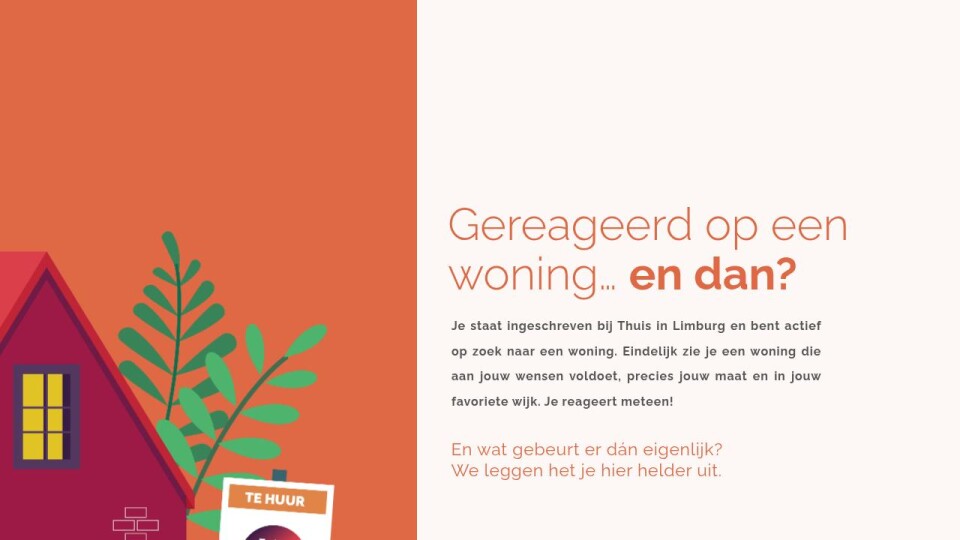 Je staat ingeschreven bij Thuis in Limburg en bent actief op zoek naar een woning. Eindelijk zie je een woning die aan jouw wensen voldoet, precies jouw maat en in jouw favoriete wijk. Je reageert meteen!